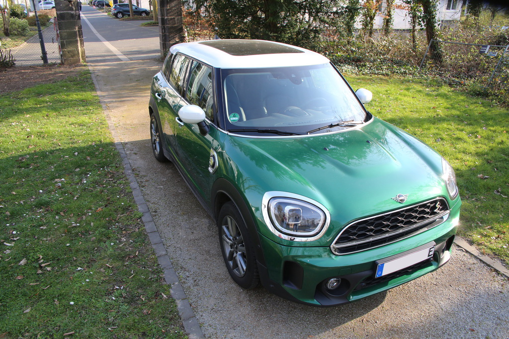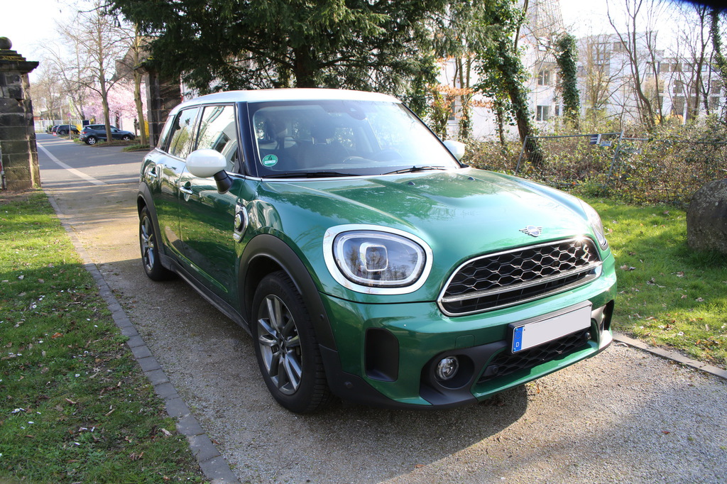 Zum Verkauf steht ein gepflegter MINI Cooper Countryman SE ALL4 Hybrid in der ikonischen Farbe British Racing Green mit weißem Dach und Panorama Glasdach – ein echter Blickfang mit Charakter. Dieses Fahrzeug verbindet sportliche Leistung, moderne Hybridtechnologie und den unverwechselbaren MINI-Stil auf perfekte Weise.